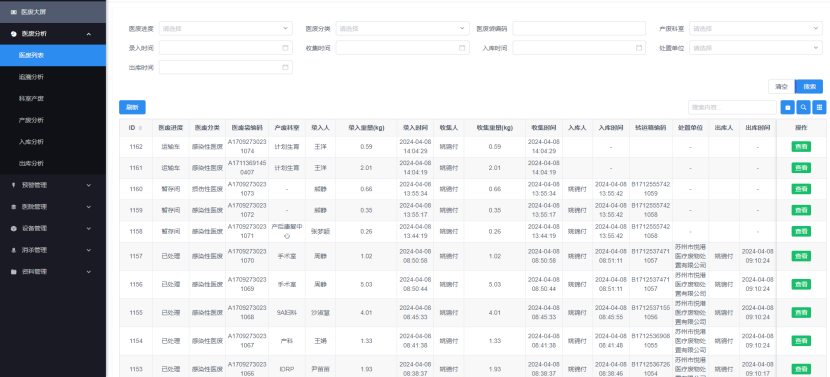 医疗废物管理系统,作为医疗废物综合解决方案中的核心管理模块,是我们在深入研究当前医疗废物管理现状、国家相关管理要求及技术发展趋势的基础上,研发而成的。该系统不仅实现了医疗废物的在线信息化、规范化、专业化管理,还具备强大的医疗废物信息追溯功能。通过该系统,医疗机构可以全面提升从“产生、收集、运送、暂存、交接”到“运输、处置”等各环节、全过程的规范化管理水平与工作效率。