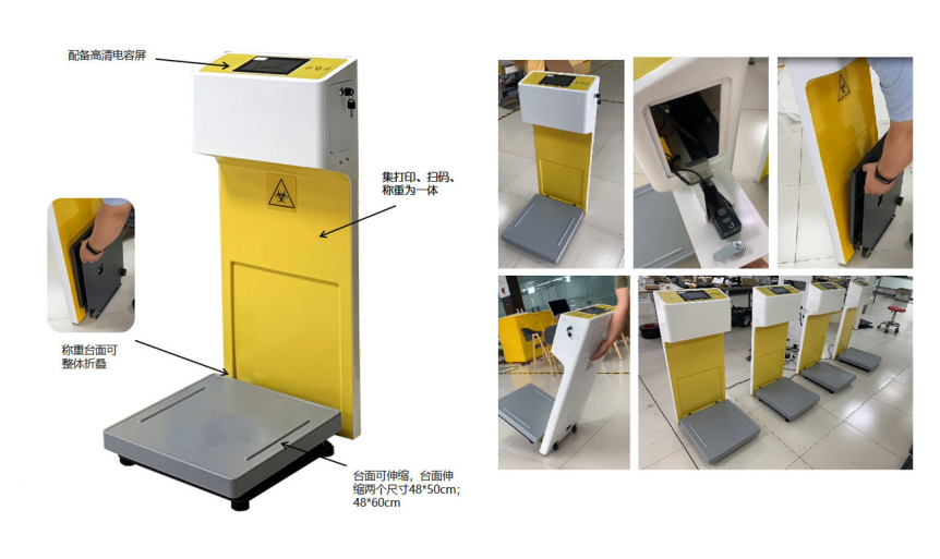 扫码枪、打印机、身份识别器、智能电子台秤、触摸式大屏、全天广角摄像等多功能方便快捷并高大上更耐用。符合国家医废收集管理要求。